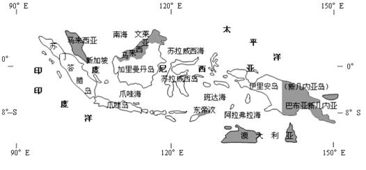 材料三:印度尼西亚地理位置示意图