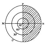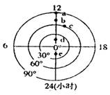 2、单选题 下图为某一时刻太阳高度等值线图,图中阴影部分为4月30日。读图完成下列各题。