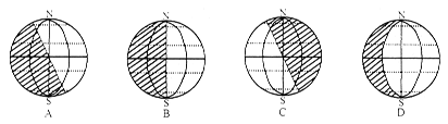 1、单选题 下列图示中(斜线部分表示黑夜,小圆圈表示极圈),太阳直射点的纬度相同的是