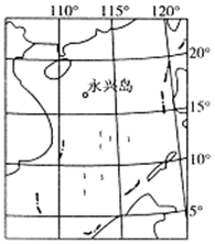 3、单选题 2012年7月24日,海南省三沙市人民政府正式挂牌成立,市政府驻地位于永兴岛(面积:2.13平方千米)。图为我国南海诸岛区域图。完成下列各题。
