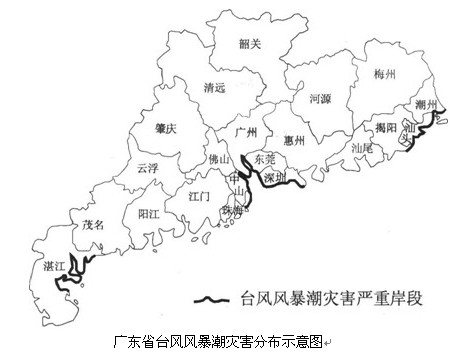 1、单选题 台风是广东省主要的气象灾害。读下图并结合相关知识,回答问题。