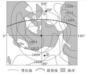 5、单选题 图示意某区域某时海平面等压线分布,虚线为晨昏线。读图完成下题。