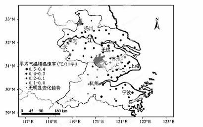 3、单选题 读“1961—2006长江三角洲平均气温增温速率空间分布图”,回答问题。