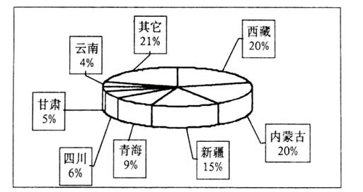 4、单选题 读七个省级行政单位某种植被面积占全国该种植被面积的比例图,回答问题。