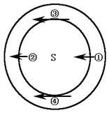 1、单选题 读下图,四个平行箭头中指向东方的是 ( )
