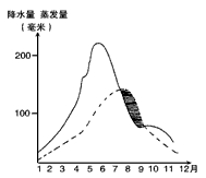 4、单选题 下图是我国某地降水量(实线)与蒸发量(虚线)的季节变化曲线示意图,完成下题。