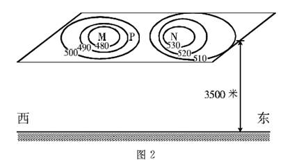 【小题3】若图中曲线为近地面等温线, a>b>c,且图示地区为大范围的、海陆兼备的地区,pq位于陆地,mn位于海洋,则此时( )