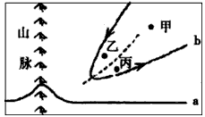 3、单选题 下图中a为地球自转线速度等速线,b表示该地某时近地面稳定风向轨迹。读图回答1—2题。