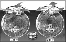 3、综合题 (10分)【地理—自然灾害与防治】通常,北极地区冬季受低气压系统支配,而北半球中纬度地区受高气压支配。北极涛动导致北极气压相位变化,专家认为是北半球中高纬地区气候异常的直接原因。