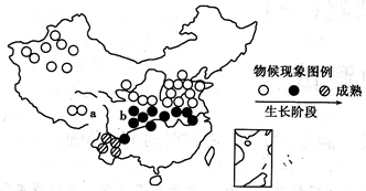 1、单选题 读3月上旬我国某种农作物物候现象分布示意图,回答下题。