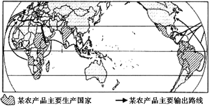 3、单选题 读某农产品主要生产国家及输出路线图,完成下列各题。