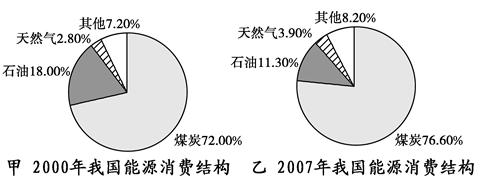 5、单选题  读我国2000年与2007年能源消费结构图,回答问题。