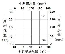 本题解析:1.结合图示a气候类型的气温、降水量信息判断,最低月温在0°C以下,降水量集中于夏季,故判断为温带季风气候,只分布于北半球。
