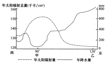 5、多选题 下图是沿“第二亚欧大陆桥”中国段的年降水量和年太阳辐射量分布图,回答下列各题。