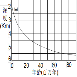 5、单选题 读海底深度与其岩石年龄关系图,回答下列各题。
