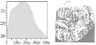 4、单选题 读“浙江省永康方岩方山沿28°55′36″N剖面图(左图)”、方岩方山“赤壁丹崖”景观图(右图),回答下列问题。