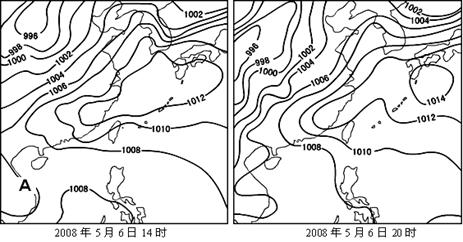 2、单选题 下图是亚洲东部某区域两个时刻的等压线图(单位:百帕),读图完成下列各题。
