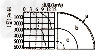 2、单选题  1.下面各题只有一个选项正确,请把正确选项的字母涂写到答题卡的相应位置上。读“地震波波速与地球内部构造图”,回答1~2题。