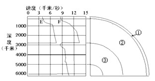 2、单选题 读“地震波波速与地球内部构造图”,回答1—2题。