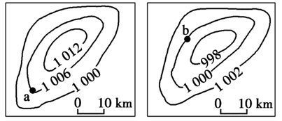 2、单选题 读下面四幅“气压分布图(单位:百帕)”,回答问题。