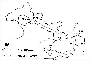 参考答案:(1)是古代丝绸之路的必经之地,是联系我国东部地区与新疆、中亚、西亚和欧洲等地重要经贸通道,其中嘉峪关是重要的军事要塞;(2分)现在是第二条亚欧大陆桥(兰新铁路线)经过此地.(2分)