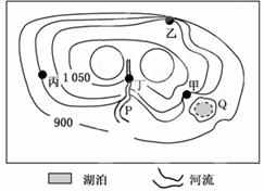 1.Q处湖泊的海拔最可能是2.图中最可能形成瀑布的地点是