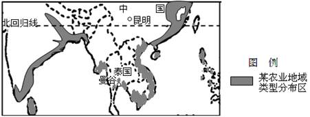 1、单选题 近三年来,我国云南省持续发生旱灾。2011年泰国发生了严重的洪涝灾害。下图为“部分地区主要农业地域类型分布示意图”。据此完成小题。