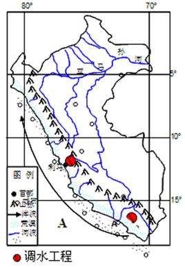1、综合题 (13分) 秘鲁的“东水西调”工程,大多建在3500—4200米山上,是迄今为止世界上已建的海拔最高的调水工程,施工难度非常大。读秘鲁示意图,结合所学知识,完成各题。