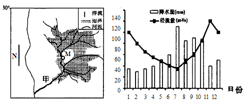 C.冬季M地的沼泽有调蓄洪水的作用