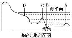 1、④岛附近海域蕴藏了丰富的石油资源,该类资源一般最有可能广泛分布于海底地形剖面图中的