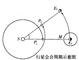 1、单选题 地球与其它行星都以不同的周期绕太阳公转,当行星和太阳都处地球的同一侧时,就是行星与太阳的会合,叫做行星合日,简称合。行星合日是一种周期性现象。根据行星公转会合周期示意图分析:若图中行星P的公转周期为P,地球的公转周期为E,则行星合日的周期T为: