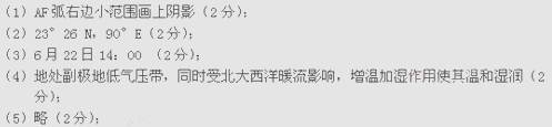 (2)此刻太阳直射点的地理坐标是?。(2分)