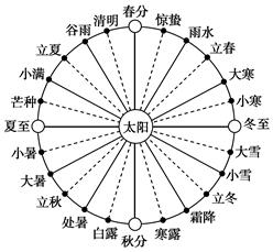1、单选题  下图为我国二十四节气时地球公转轨道上的位置示意图,相邻两个节气之间的天数大约为15天。读下图,回答下列各题。