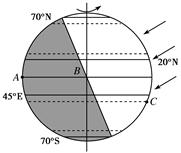 (2)在下图中画出此时的太阳光照图(侧视图)。(10分)
