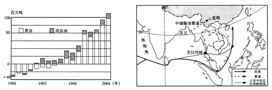 本题解析:从我国石油净进口量变化图中看出,我国成品油从1992年开始呈正值,而且逐年递增。对石油进口渠道的对比分析,可以从石油总量、运输安全、运输里程、运输的特点、投资成本等方面展开,找出各自的优缺点。为了维护国家的能源安全,世界许多国家都建立了战略石油储备。