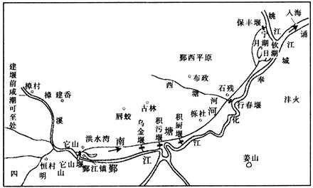 材料一:浙江省宁波鄞江的上游樟溪流在到达鄞江镇后,就呈一个"丫"字状形式分为两岔,一支流入鄞江,一支流入南塘河。鄞江是"江",而南塘河是"河"。南塘河水流经鄞西,既灌溉了这里的农业,又成了宁波市的饮用水源。