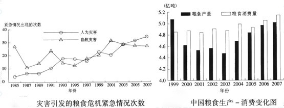 粮食危机紧急情况的次数大于?;其后两者交替上升。