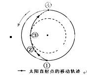 本题解析:本题考查地球运动。根据图示的自转方向判断为北半球,图示③位置表示太阳直射北回归线,为夏至日,则④表示夏至日之后,太阳直射点又回到赤道,为秋分日。