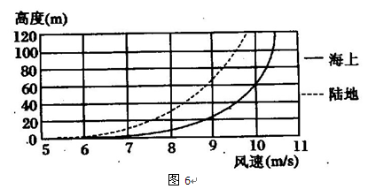 2、单选题 作为一种清洁能源,风能的开发越来越受到人们的关注。读“陆地与海上风速剖面比较图”(图6),据此完成18~20题。