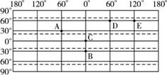 3、综合题 下图为“世界经纬网示意图”,读图完成下列问题。