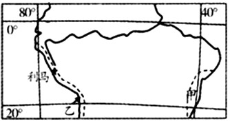 D、乙处气候主要是受沿岸洋流控制形成的