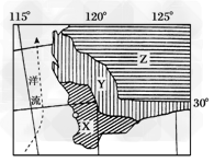 4、单选题 读世界某区域海洋与陆地自然带分布图,回答1~2题。