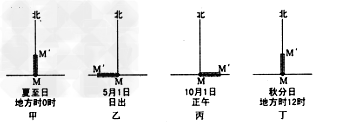 3.若在M地垂直立竿,则下图中MM′所示日照竿影朝向正确的是