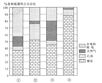 小题1:①单位GDP能耗高,生产技术较为落后,总能耗低,GDP产值低,因为我国西部地区,如青海;②地区GDP产值高,能源消耗少,可能为广东地区;③地天然气比重高,可能为四川;④地煤炭的能源地位高,该地煤炭资源丰富,可能为河南。所以本题选择B选项。