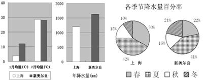 (2)根据材料二比较两城市的气候特征的异同点。(5分)