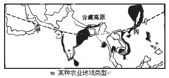 小题1:阴影所示为东亚、南亚、东南亚的沿海平原,农业地域类型应为水稻种植业。特点是:劳动力密集;机械化水平较低;传统的精耕细作的方式;商品率低;生产规模小。