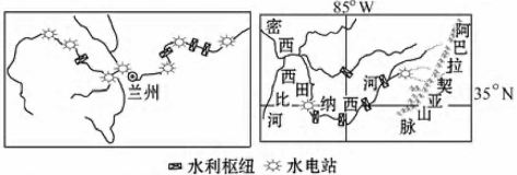 5、综合题 读黄河某段与田纳西河流域图3一11,结合所学知识回答下列问题。