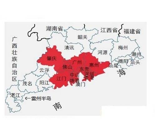 材料二: 下图是湛江市所在的珠三角及附近区域版图。