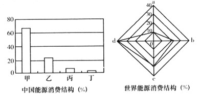 2、单选题 中国既是能源生产大国又是消费大国,但每吨标准煤的产出效率仅相当于日本的10.3%、欧盟的16.8%、美国的28.6%。读中国和世界能源消费结构图(煤、石油、天然气和其他能源,见下图),回答1~2题。