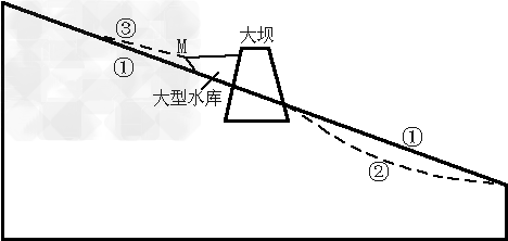 (2)指出M处可能出现什么地貌类型?分析大坝上、下游河流剖面上升和下降的原因。